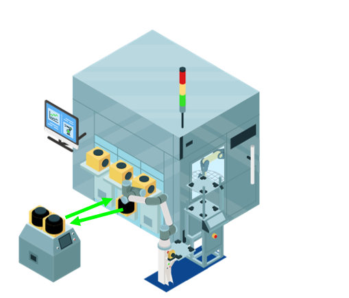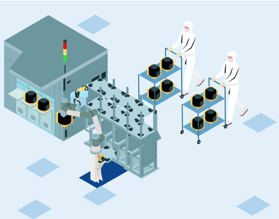 The SideLoader is a compact collaborative robot capable of automatically loading and unloading equipment. It extends the reach of automated transport vehicles (AMHS) that are unable to access the loadports of certain tools.